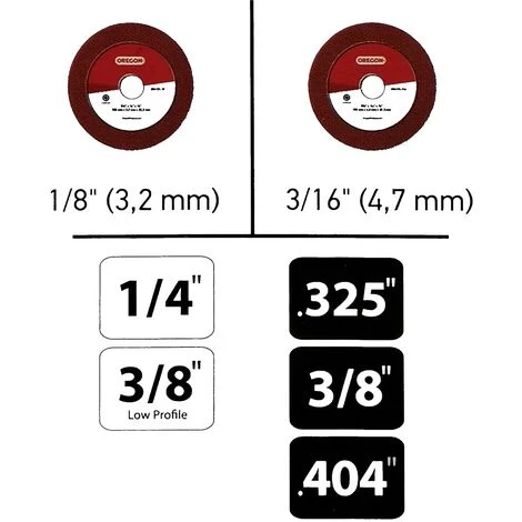 – Incluso: 1 mola 3/16′ ( 4,7 mm) per affilare catene.325′, 3/8′ e .404′