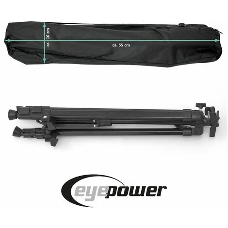 I piedini di gomma assicurano una presa al suolo sicura, sia all’interno che all’esterno. L’altezza del cavalletto telescopico è liberamente regolabile da 52 cm fino a 120 cm (l’altezza desiderata può essere facilmente bloccata con i pomellini a vite sulle gambe).