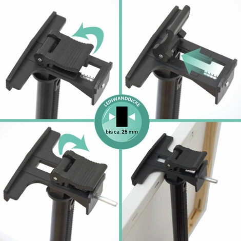 – Spessore tela: max. 25 mm (con sistema di blocco per tele di spessore inferiore)