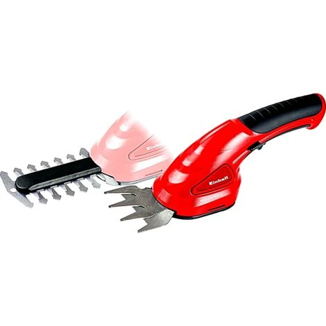 Batteria al litio 3,6 V, lama per erba (larghezza taglio cm. 7) e tagliasiepi (lunghezza taglio cm. 10), impugnatura ergonomica antiscivolo, interruttore di sicurezza, manico telescopico.