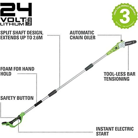 Greenworks Potatore Ad Asta, 24V, 20 Cm Lunghezza Spada Con Batteria 2Ah E Caricabatterie