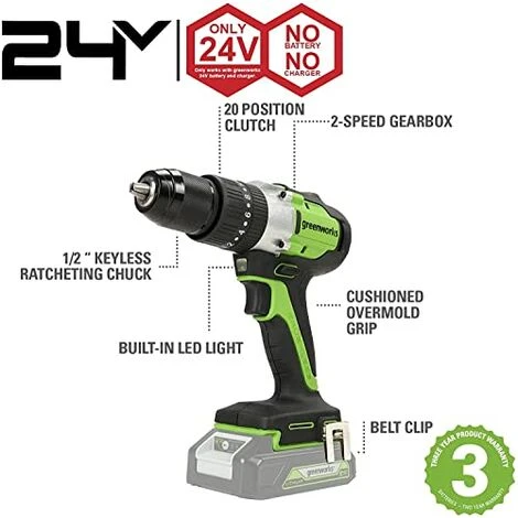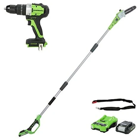 Greenworks Potatore Ad Asta, 24V, 20 Cm Lunghezza Spada, Trapano-giravite Con Batteria 2Ah E Caricabatterie
