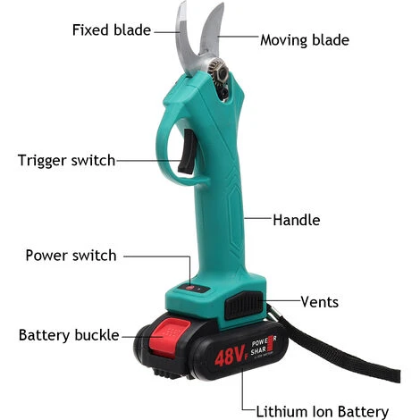– Potatore a batteria ricaricabile per tagliare e potare rami in frutteti, vigneti.