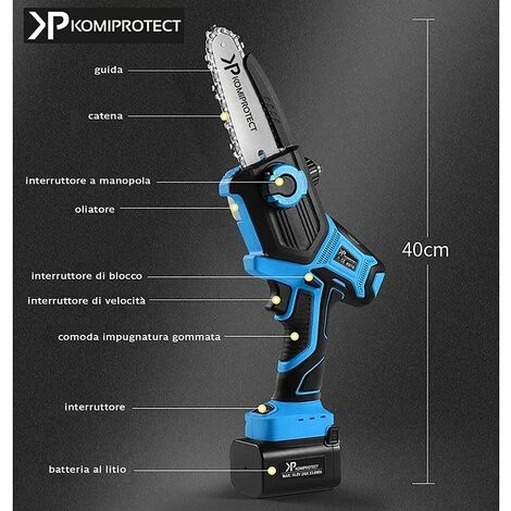 Motosega a batteria da 5 pollici a Batteria. Questa piccola e leggerissima motosega manuale a batteria è l’ideale per potature professiaonli e continuate, non affatica ed è adatta per un uso continuo e prolungato grazie al potente motore brushless. Inoltre, la piccola motosega portatile portatile ricaricabile può essere utilizzata con la sua asta di prolunga per tagliare facilmente alberi ad alto fusto.