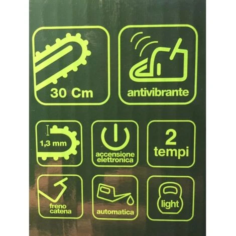 Motosega per potatura e sramatura con motore 2 tempi cilindrata 25 cc alimentato a miscela.