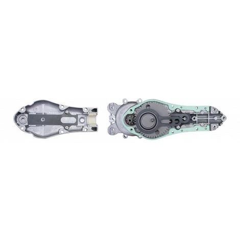 Con massima solidità costruttiva di tutti i suoi componenti, il meccanismo e le bielle sono montati su cuscinetti. Il coperchio in alluminio della scatola ad ingranaggi è fissato con 6 robusti serraggi. Bielle in acciaio con rullini per fluidità di movimento e durata.