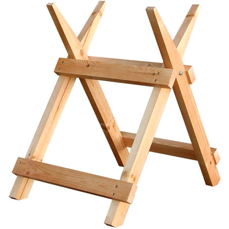 Cavalletto pieghevole in legno, levigato e avvitato. Base smussata per una buona stabilità. Sezione verticale: 60 x 30 mm.
